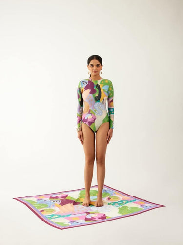 A bold blend of coverage and cut-outs — this long sleeve swimsuit brings sleek style with a playful peek. The waist cut-out adds definition without compromising comfort, making it a standout must-have for your swim wardrobe.