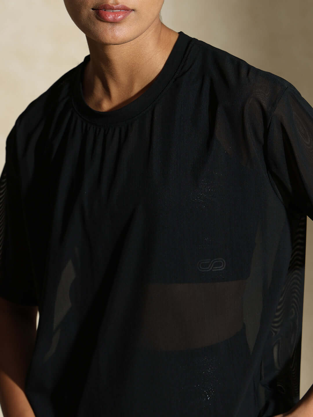 Lightweight, breathable, and effortlessly stylish—this mesh tee is the ultimate throw-on-and-go layer. Designed to elevate your activewear, it transitions seamlessly from workouts to nights out, making it a versatile must-have in your wardrobe.