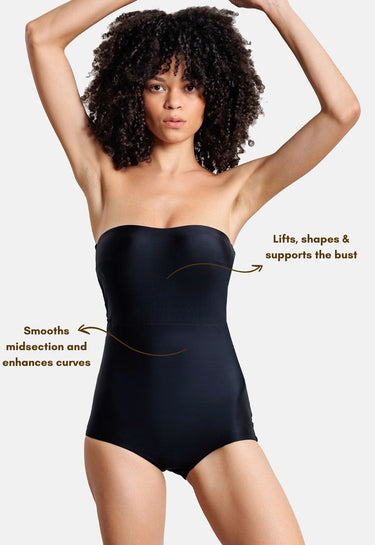 - Ideal shapewear for styling under fitted, strapless, and off-shoulder outfits