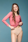 A full-sleeve thermal cami with a deep neckline and back, designed to disappear under Indian festive wear and Western outfits. Soft, warm, and ultra-light for invisible warmth all winter.