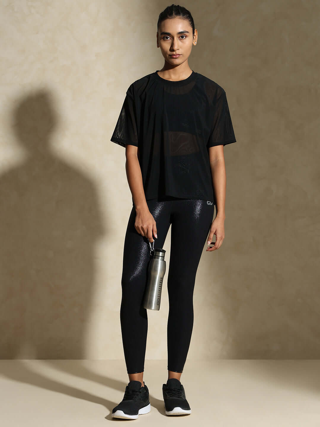Lightweight, breathable, and effortlessly stylish—this mesh tee is the ultimate throw-on-and-go layer. Designed to elevate your activewear, it transitions seamlessly from workouts to nights out, making it a versatile must-have in your wardrobe.