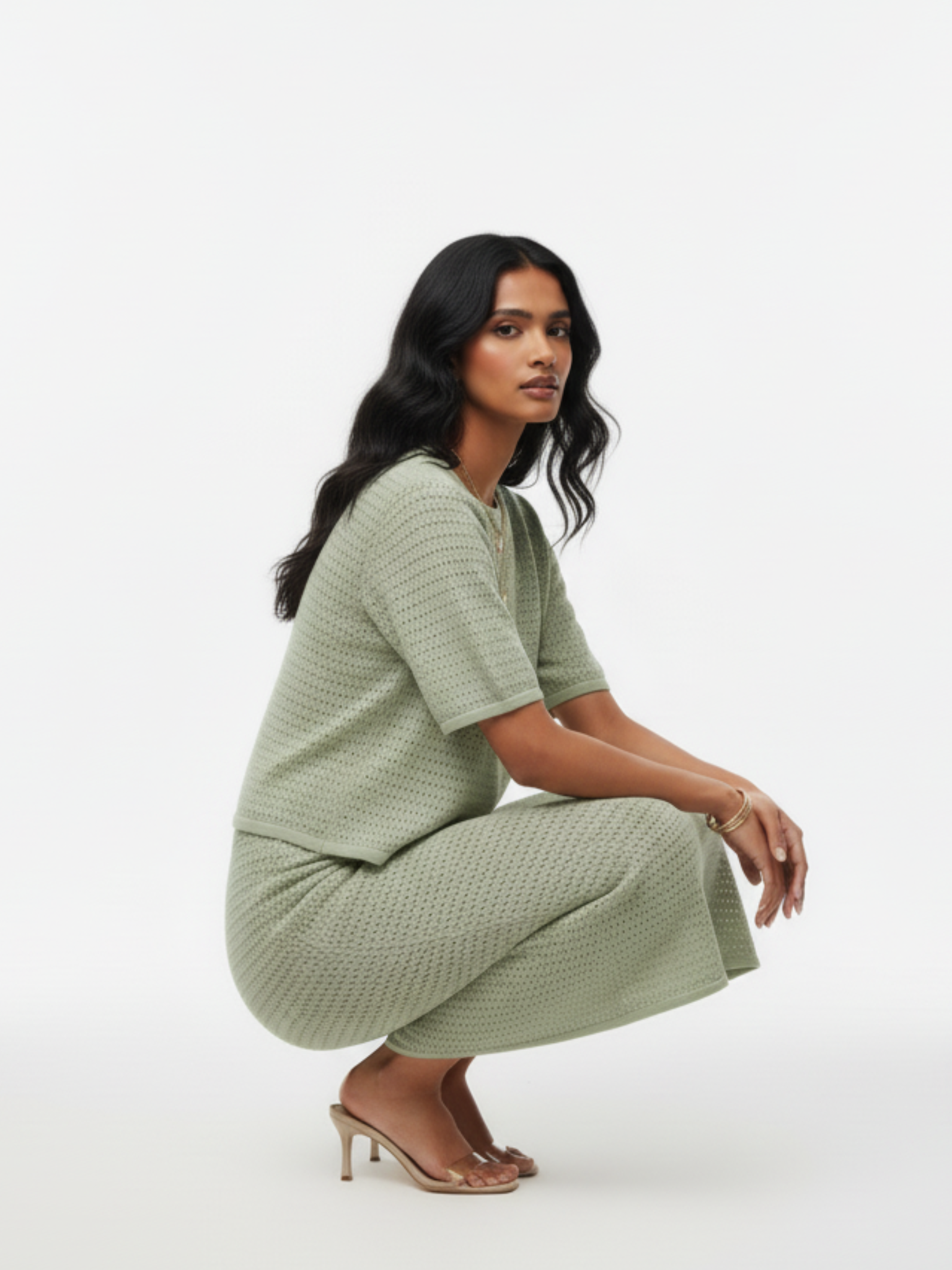Timeless, versatile, and beautifully understated, this sage knit set blends comfort and sophistication for every occasion.