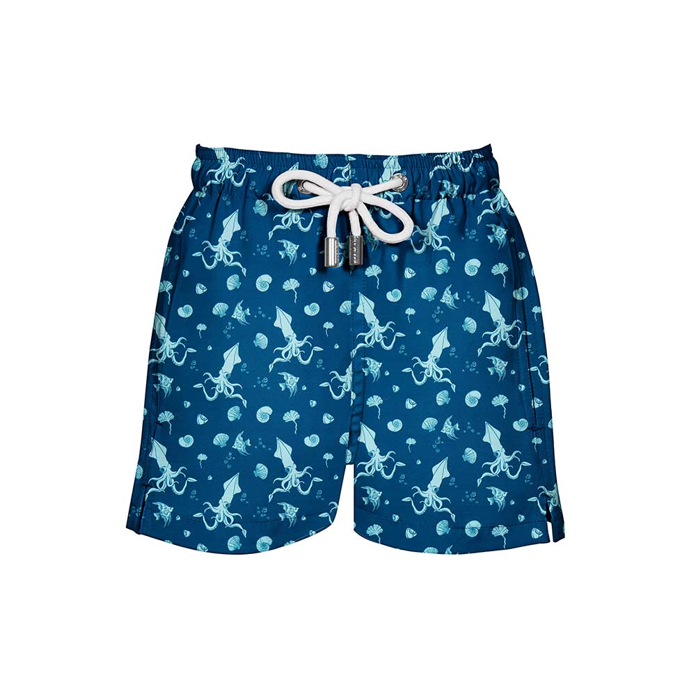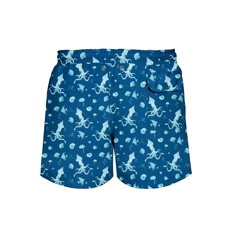 Mysterious in myth, playful in print. These day-glo squids ditch their elusive reputation and come to life in full colour—dancing across your swim shorts with carefree charm. Bright, cheeky, and just a little surreal, they’re here for a good time.