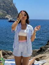 Embrace carefree comfort in this classic sky blue gingham pajama short set made from soft, breathable cotton. The timeless check pattern and relaxed silhouette create the perfect combination for warm nights, lazy weekends, and everything in between.