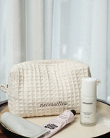 - Necessities Waffle Pouch by Akiiko - 100% waffle-woven cotton with water-resistant nylon lining