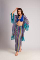 Channel carefree boho vibes with our Gypsy Blue Fringe Cape — the perfect layer for sunlit strolls and breezy beach days. Light, fluid, and endlessly versatile, this piece brings coastal charm to every look.