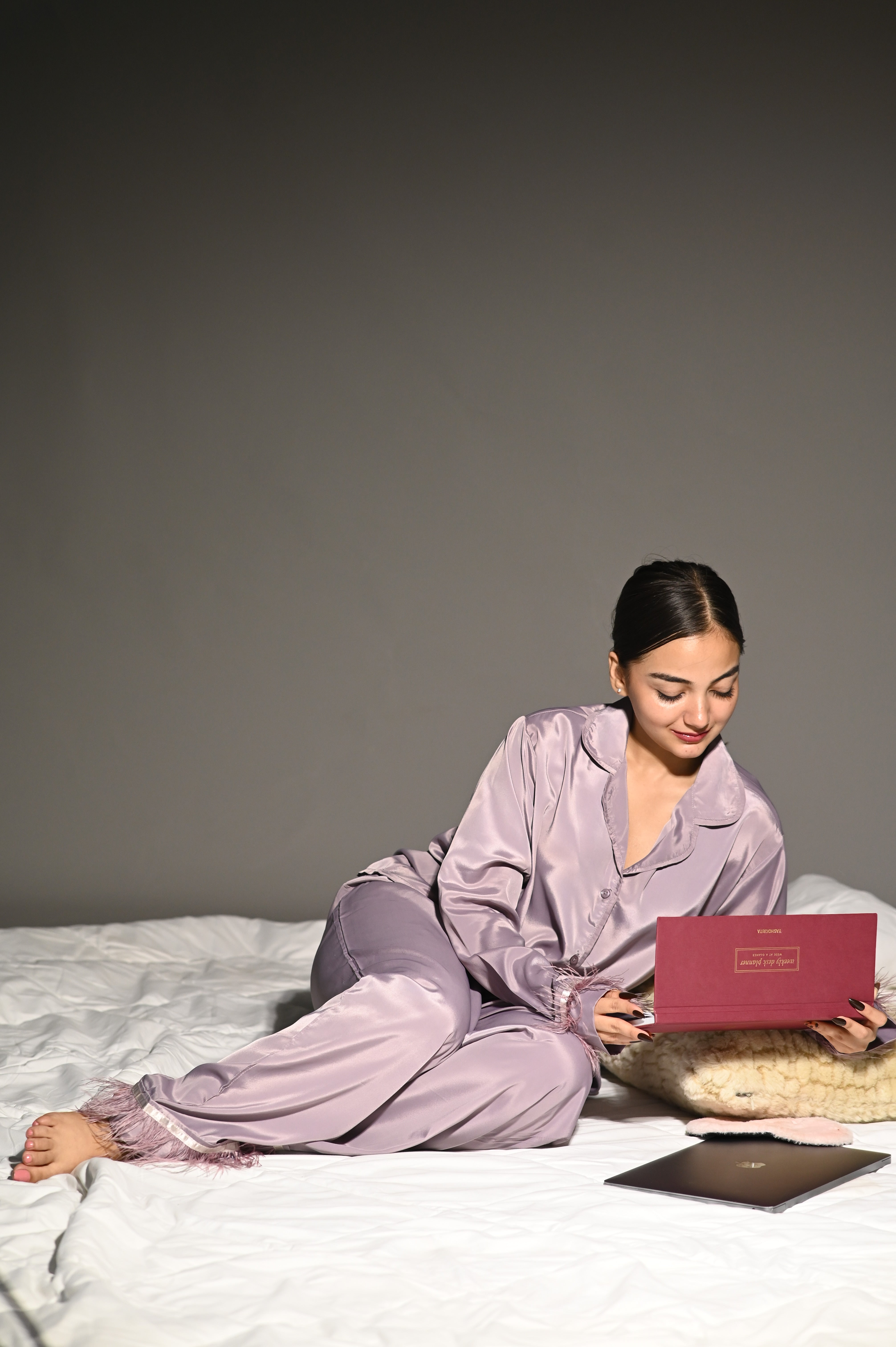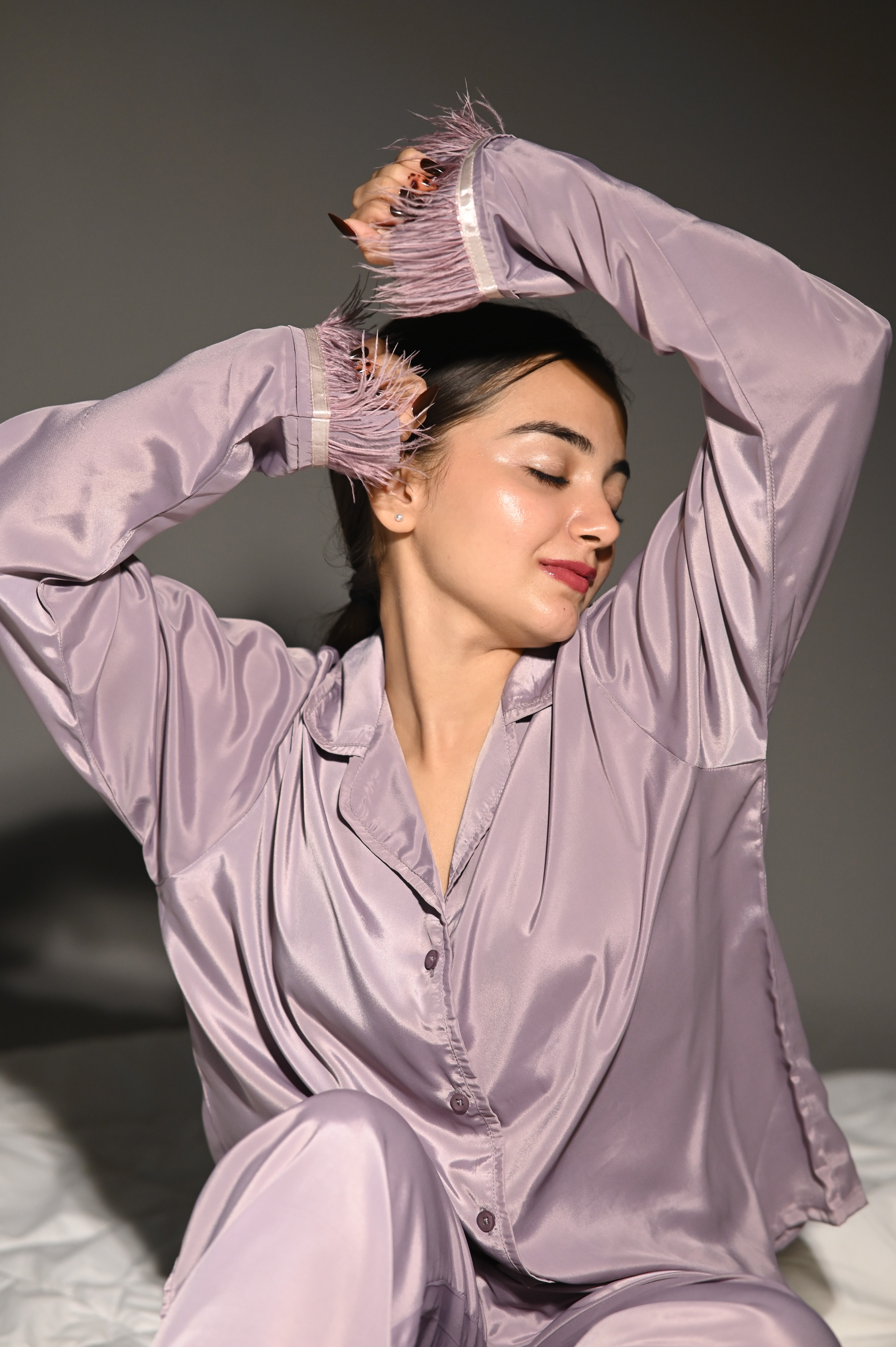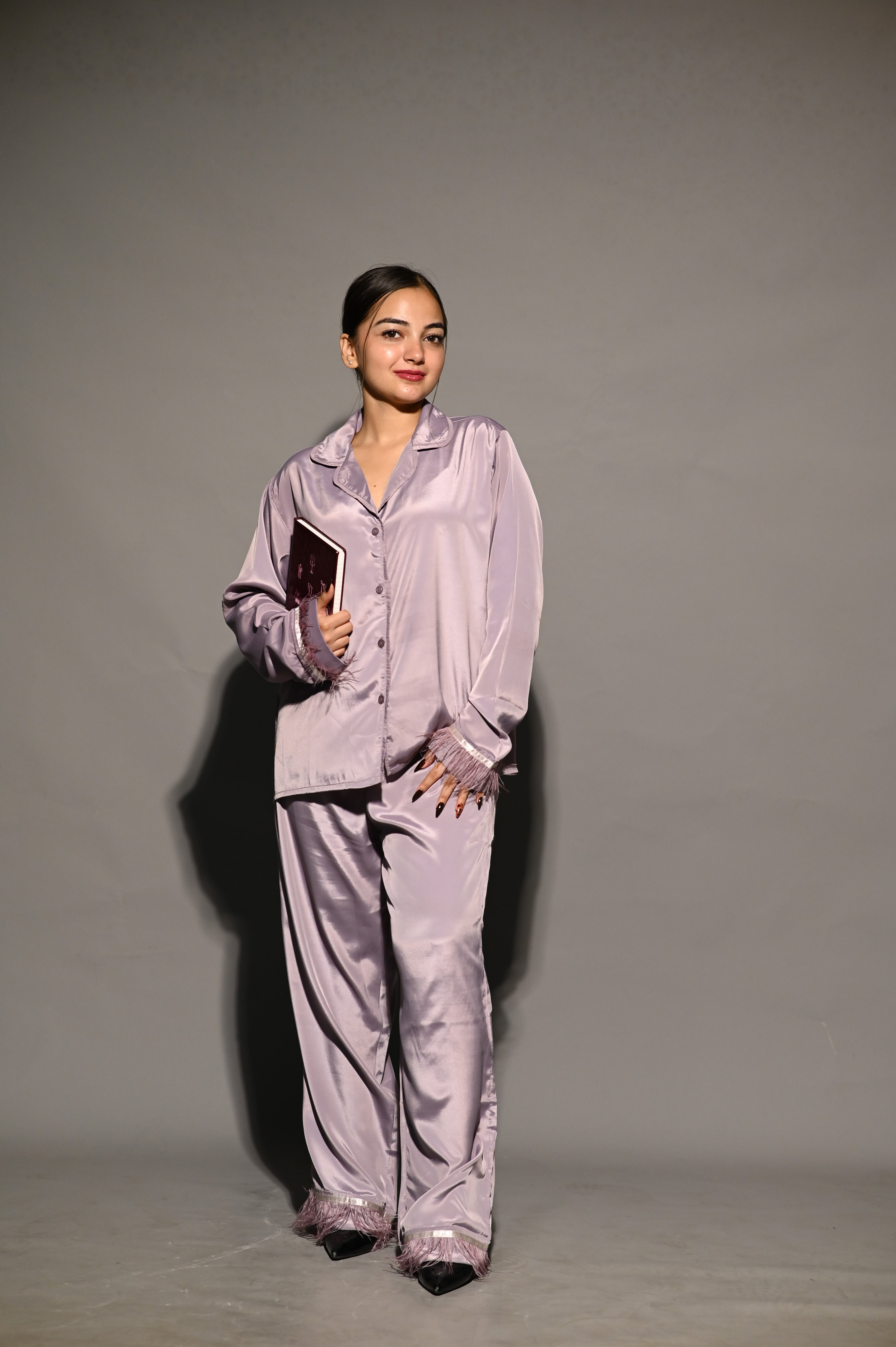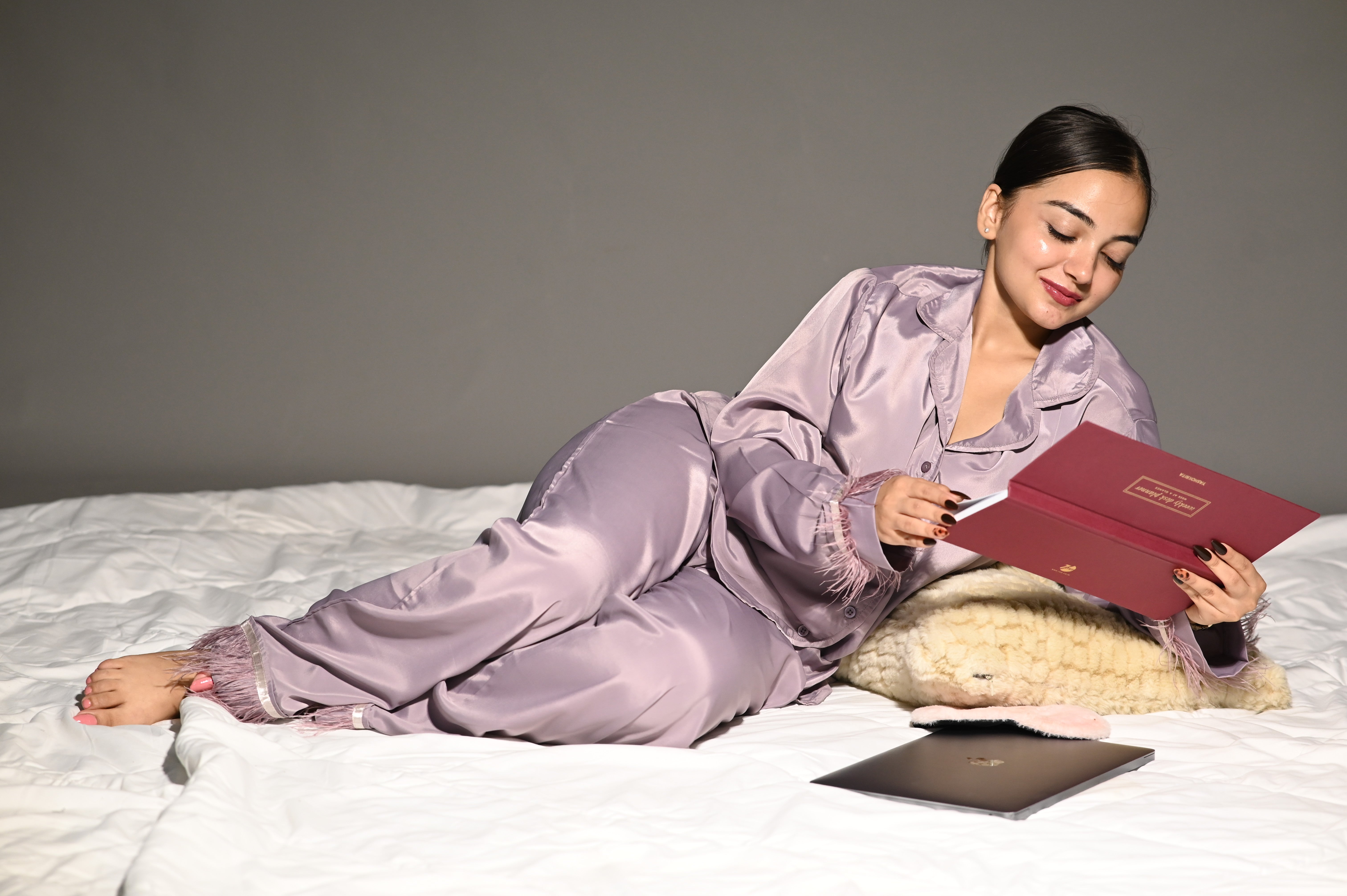 Mismatched celebrates the modern bride — effortlessly blending old-world charm with her own individuality. With feathered accents and a silky drape, this luxe satin set captures the magic of transition, confidence, and love that feels uniquely hers.