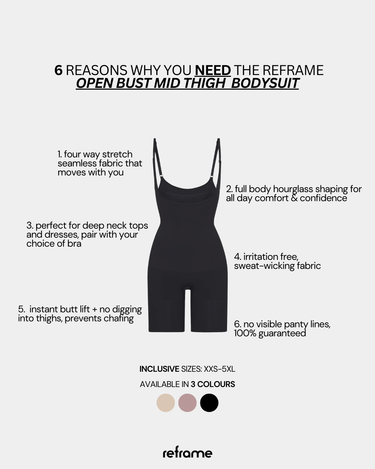 Soft, sculpting, and built for real bodies, this open-bust bodysuit smoothens thighs, sculpts the waist, and defines the butt — all while staying invisible under clothes. Designed to be worn with your favorite bra, it works perfectly under plunging necklines while offering targeted support and all-day comfort.
