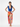 - Cobalt blue monokini with ruffled V-neckline