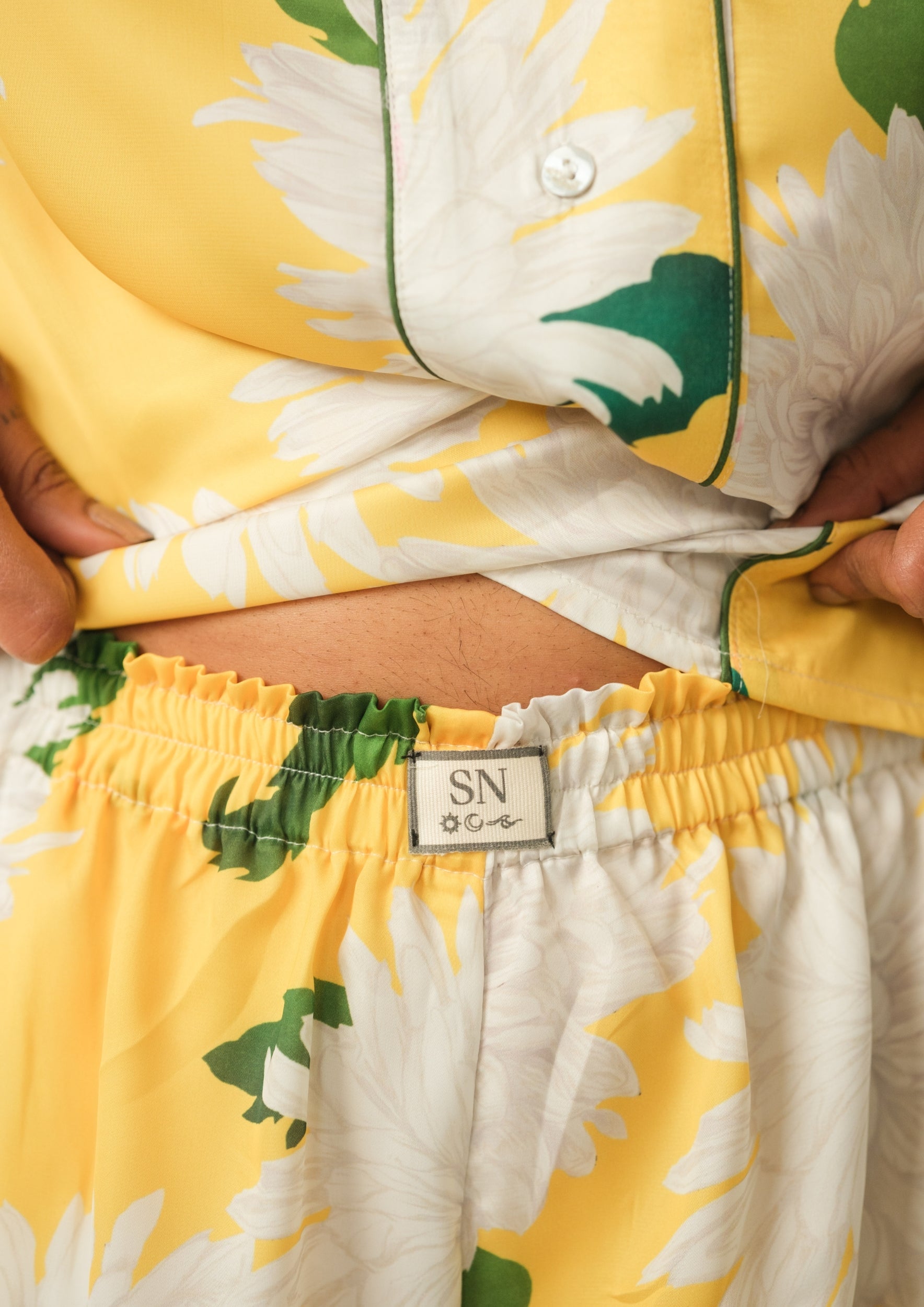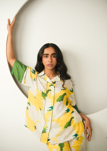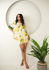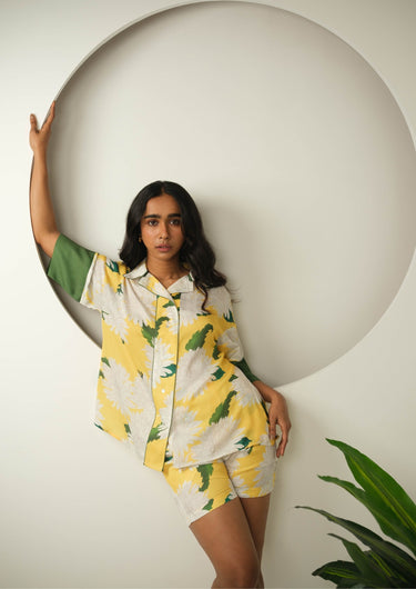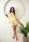 Bring a burst of sunshine to your lounge collection with the Satin Printed Shorts Set — a vibrant blend of luxury, comfort, and charm. Crafted from silky-smooth satin in a refreshing yellow hue with bold floral prints, this set is designed to make your downtime feel effortlessly stylish and elevated.