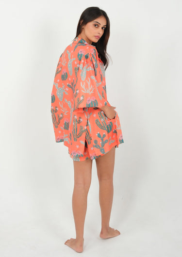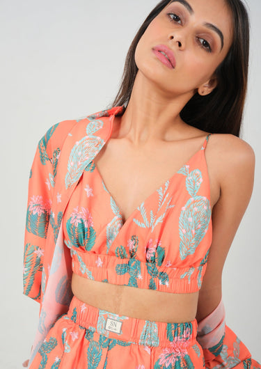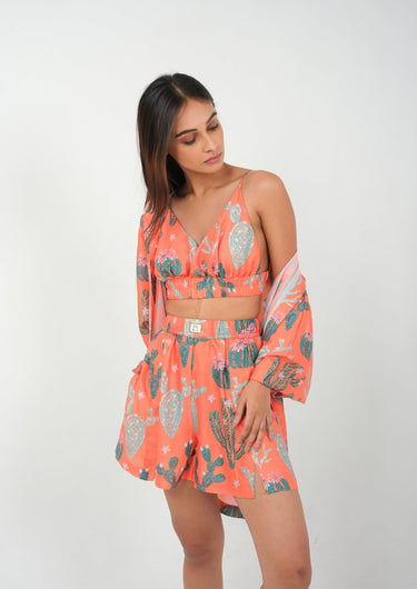 Vibrant, playful and irresistibly stylish, this 3-piece resort wear set is made for sunshine-filled days and ocean-drive holidays. The hand-illustrated tropical print in rich tangerine instantly uplifts your mood, while the soft, flowy fabric keeps you cool by the beach, at brunch, or on a yacht.