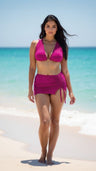 Make a bold statement in this striking magenta bikini set — the perfect blend of playful and chic.