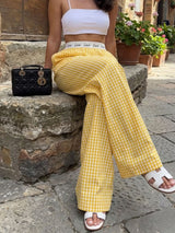 Lounge in style and comfort with these cheerful yellow gingham pants!